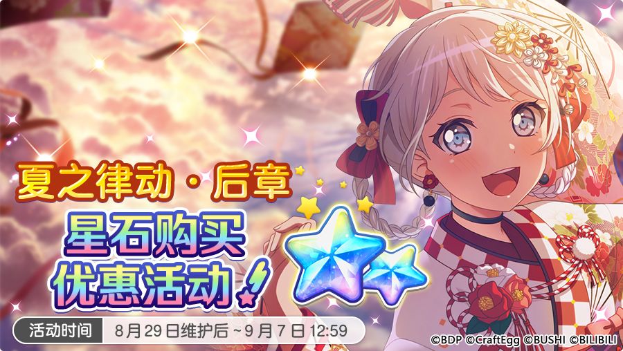 8月29日维护后,游戏内将开启「迎春万岁!欢天喜地过新年!」巡回演出活动和★4出率双倍的「夏之律动·后章 Dream Festival招募」以及最多可免费招募70连的「夏之律动·后章 1日1次免费10连招募」,并追加翻唱歌曲《もってけ!セーラーふく》和EXTRA歌曲《シル・ヴ・プレジデント》,还将开启「夏之律动·后章纪念 限时累计消费活动(轻量Ver.)」。此外,还将开启「夏之律动纪念充值优惠」并上架两款「夏之律动奇迹招募礼包」!欢迎大家登录游戏查看!