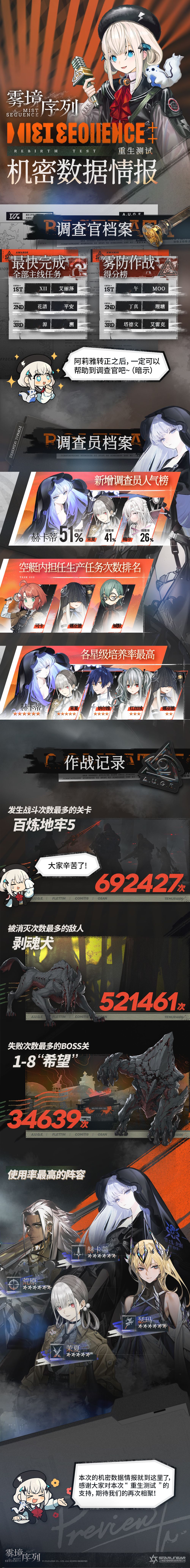 “重生测试”已经结束,但调查团前进的脚步仍未停止。当前,我们已安排阿莉雅完成对本次测试趣味数据的整理。在全新的调查任务开启前,一起来看看这份《机密数据情报》吧~