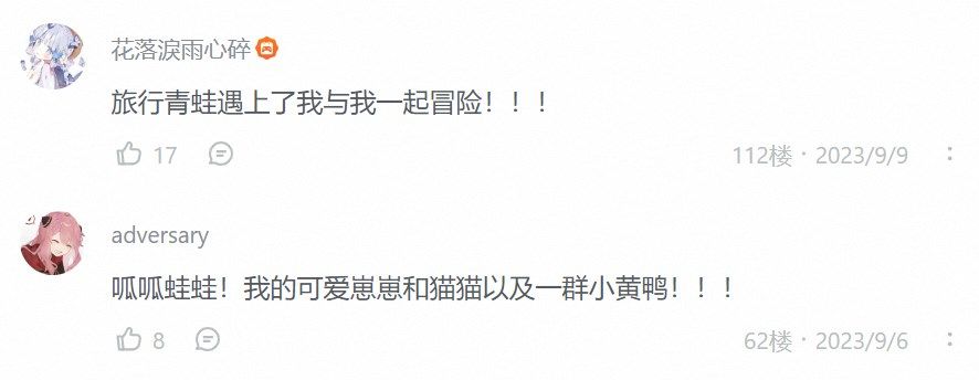 在所有评论里,恭喜花落淚雨心碎、adversary、夏树、时光路人、死库水☆天下第一♡~、桐桐、欲施人、糖糖、残羽、超莓良心🍓获得《森之国度》×《旅行青蛙》联动明信片!