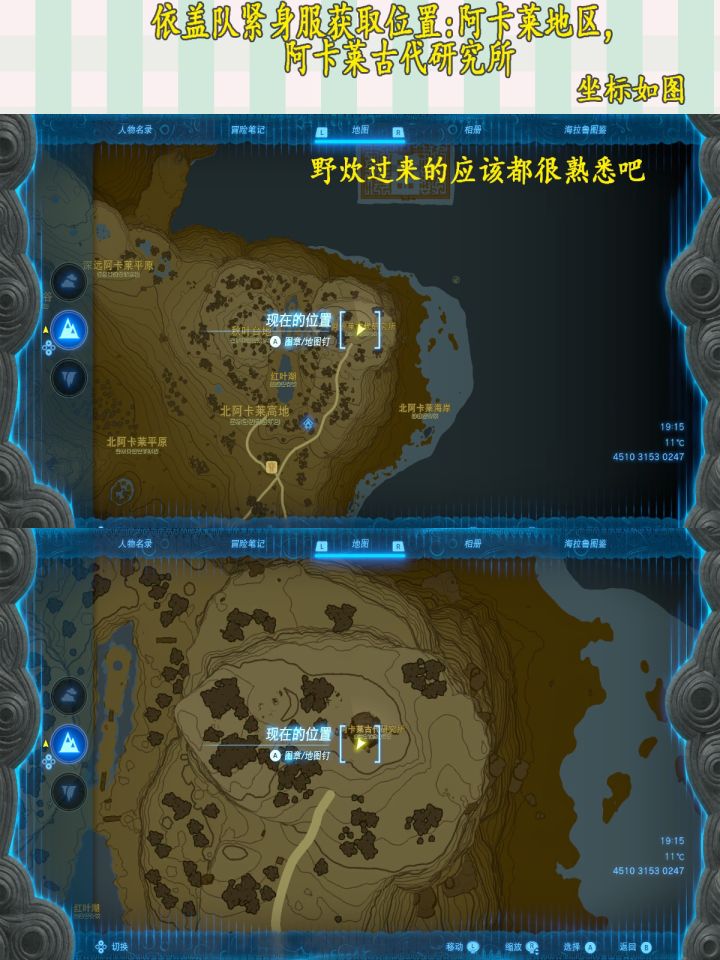 服装如图3所示,位于阿卡莱古代研究所,玩过野炊的同学我相信没有找不到的吧(洛贝利:惨遭偷家)在半路上就能看见依盖队的青蛙了,路上有一些小怪,萌新的话可能会有些难对付哦,对付完如图4所示的依盖队员后就能拿到紧身服啦,也别忘了旁边的传送标记器哦