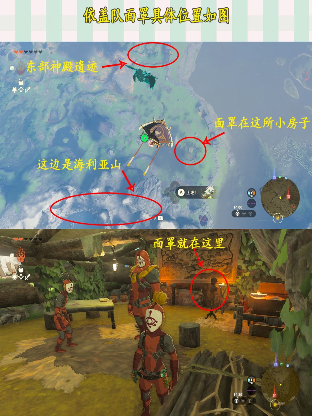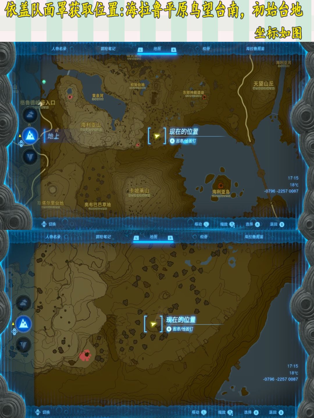 依盖队面罩的所在位置可能是大部分同学梦开始的地方了,位于初始台地之上,位置坐标如图7,如果感觉较为抽象,也可以参考我图8的位置实拍图,如图8,房间很小,打败敌人后就可以拿到面罩啦
