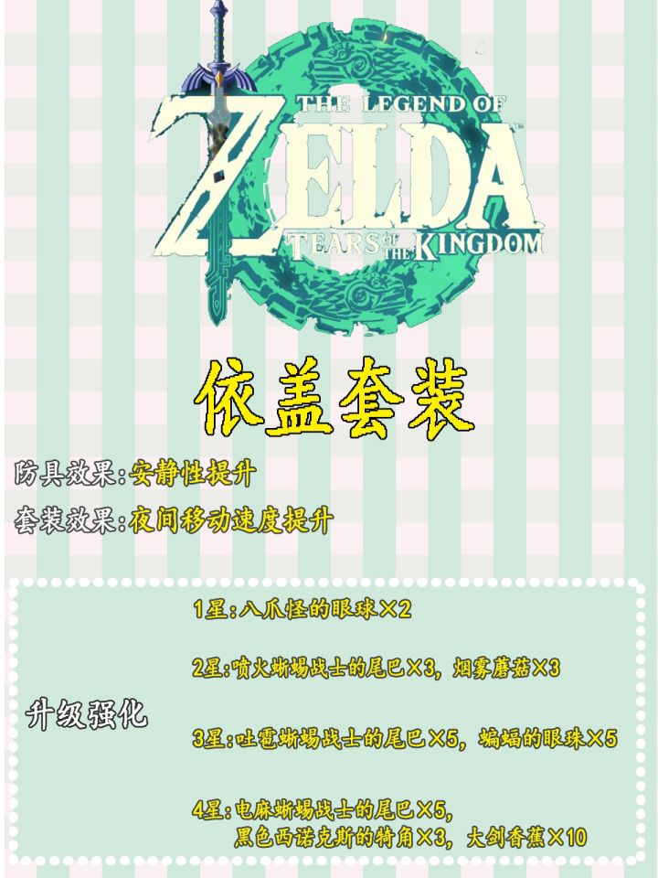 在前期缺钱买不起潜行套的情况下,依盖队免费发放的依盖套装可以说是非常完美啦,而且穿上后除了可盖大人,依盖队其他人根本认不出这是林克哦