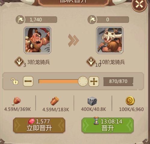 点击箭头后,进入晋升界面,你可以消费钻石立即晋升,也可等待晋升。士兵将直接晋升到当前士兵的最高等级。