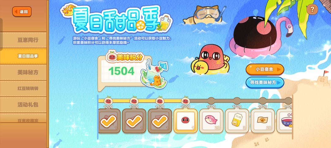 合计每天约250积分,小豆宿舍的羁绊因为没有红小豆只能升级到2级能拿到240美味积分