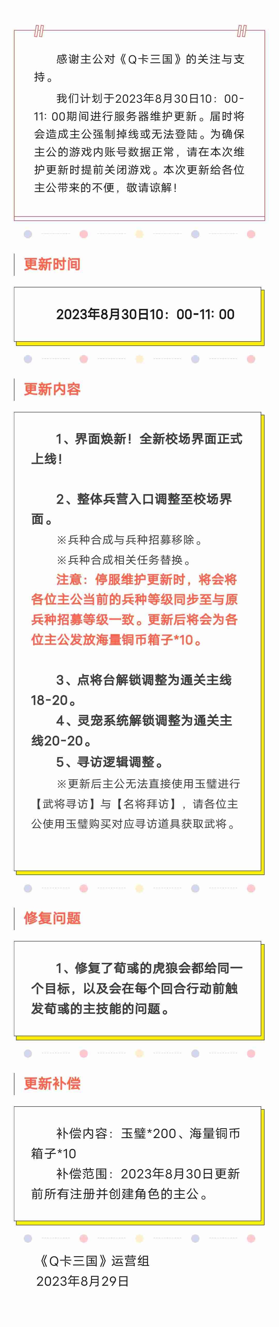 《Q卡三国》8月30日更新公告