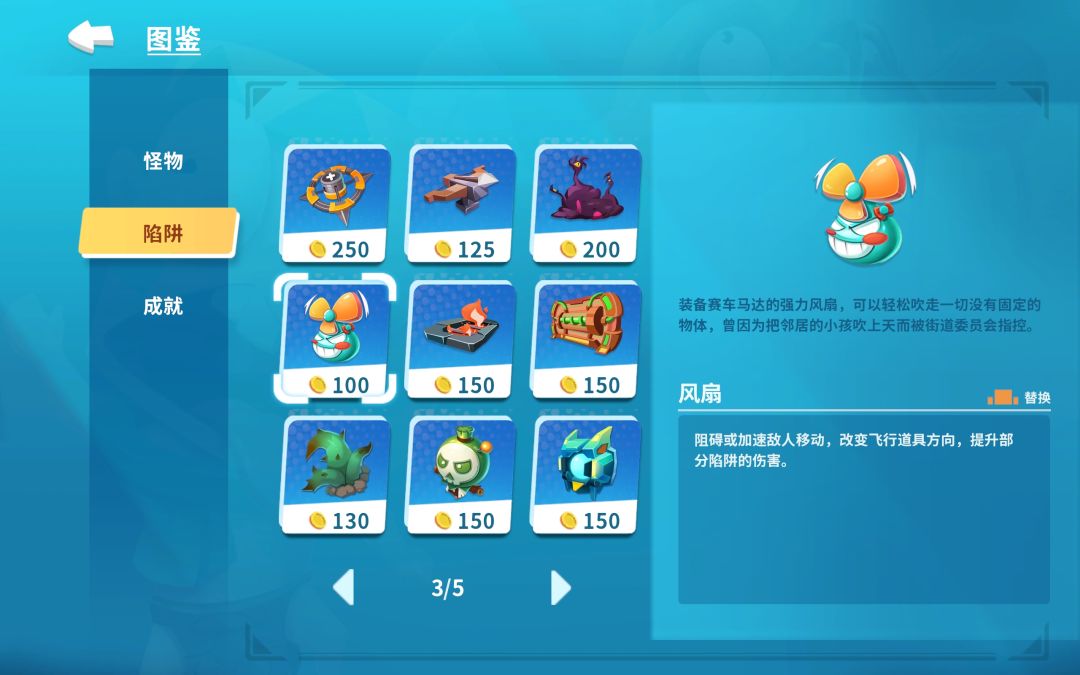 可以吹动毒气和火焰形成远程攻击效果(射程10格);对割草机和苦痛齿轮一倍增伤;增强割草机和苦痛齿轮的减速效果,搭配超重领域或地鼠锤可以让怪蜗步向前。