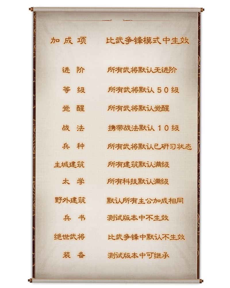 1.“比武争锋”先锋测试期间,所有主公匹配对手仅在以上5个服务器内选取;