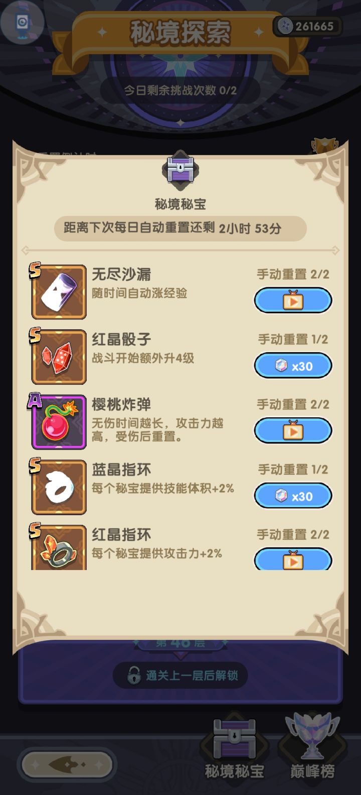有进图+4,这里有个小技巧,就是这游戏的秘宝掉落机制是只要你学到五个技能,那么他掉落的秘宝就不会乱给(只会给你手上已有技能的)。而红骰子的+4判定在进图三秘宝之前,所以可以用红骰子这四次机会锁定秘宝池。进图后不出所料秘宝给得还可以,其中有一个石兵+9,我那个时候还不知道这一个小小的秘宝对战局带来多大的影响