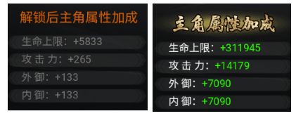 上图左边是1级神兵属性,右边是满级神兵属性加成参考