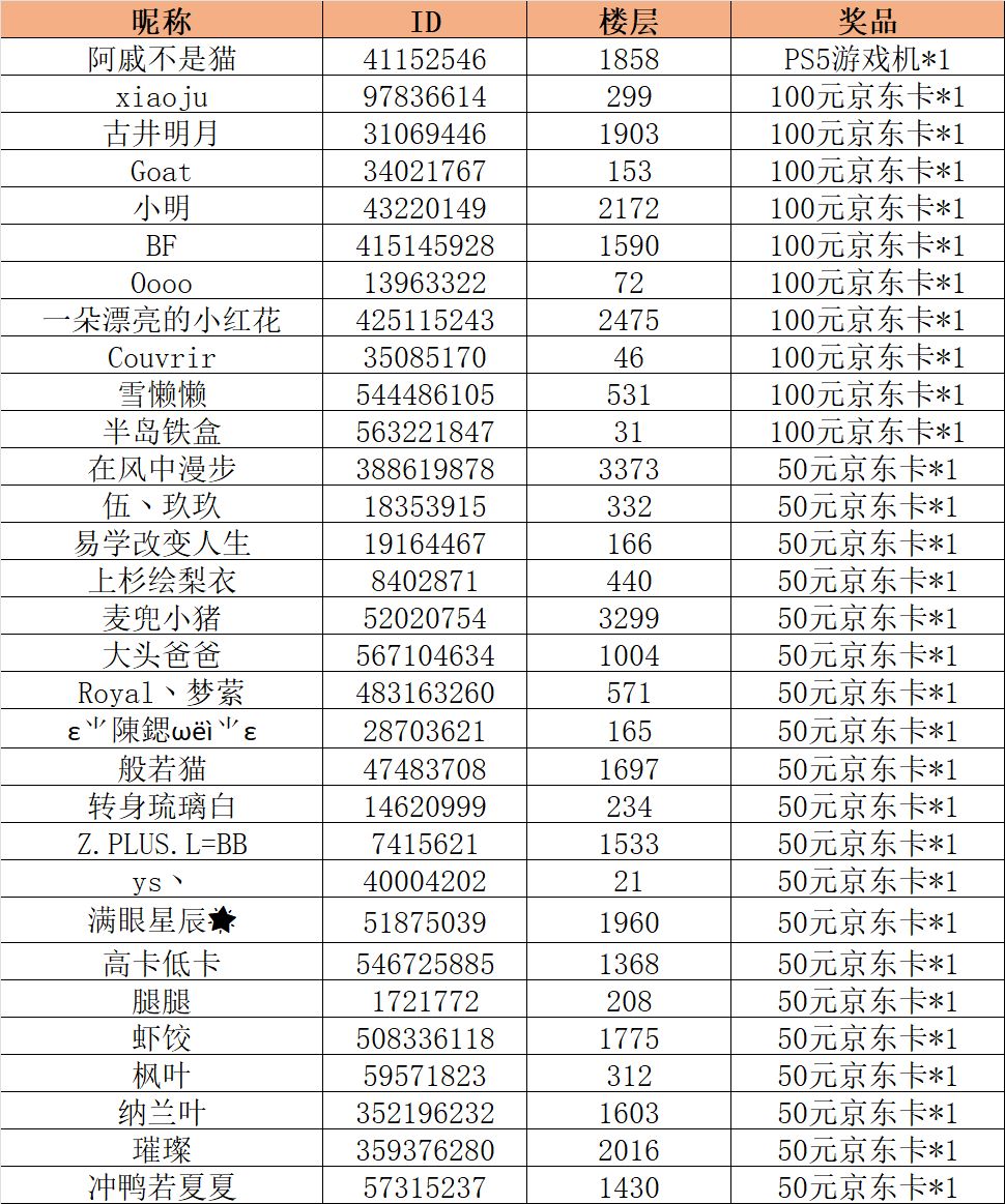 1. 本活动将在所有有效回帖中随机抽取中奖玩家。