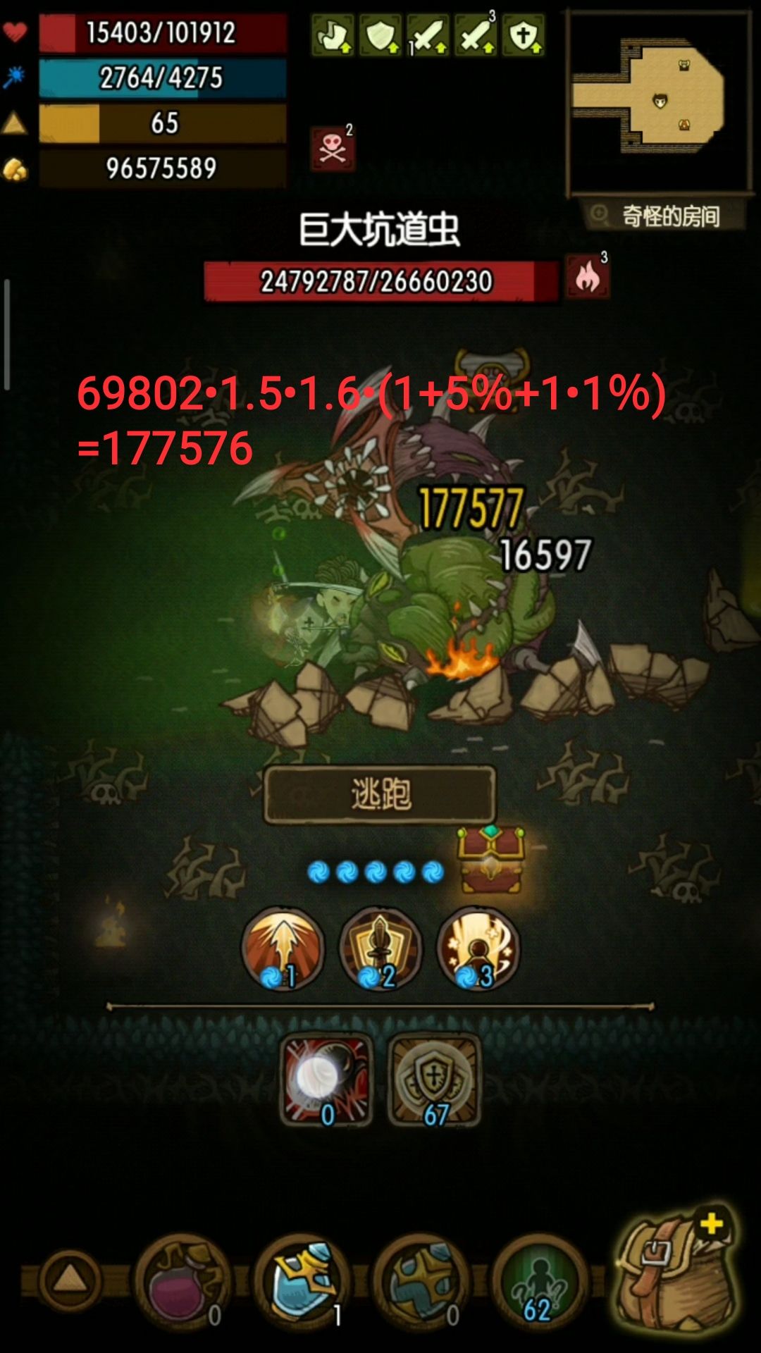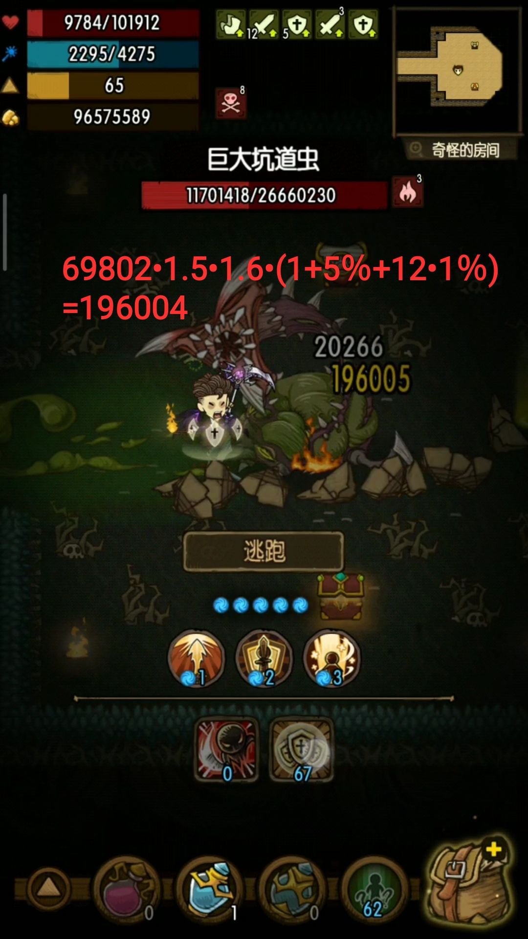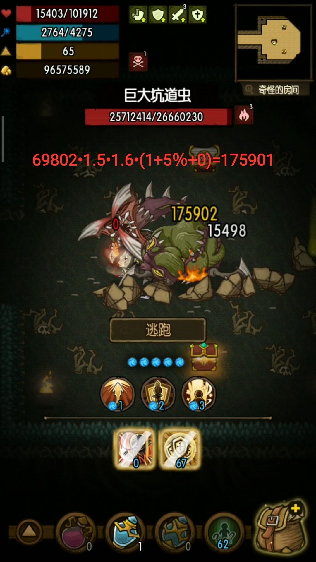 注:这里测试没有用到四绝境,是因为之前已经把其他几个因素测试完了,最主要的原因是我这用了四绝境后最大攻击>最小攻击,无法达到固定输出的目的。
