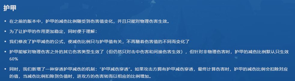 多多少少全民都会尽量护甲了~(护甲减伤60%作用于非物理的击中和间接伤害)