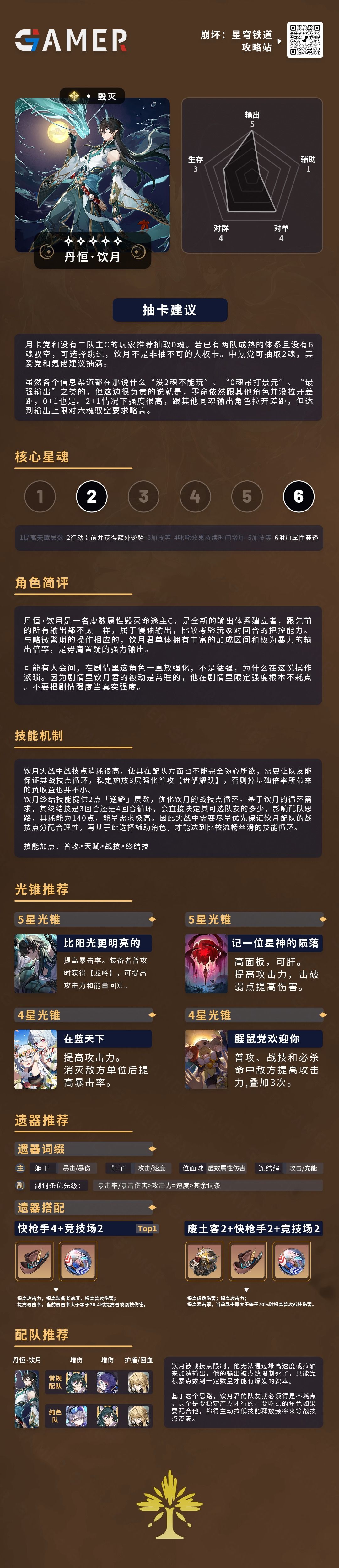 【V1.3攻略】角色攻略-丹恒·饮月/一图流/机制/星魂/光锥/遗器/配队