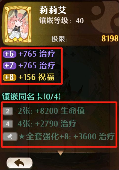 总而言之一句话,前期把战力相关的全垒身上,后面有选择余地时全力冲治疗能力就对了!