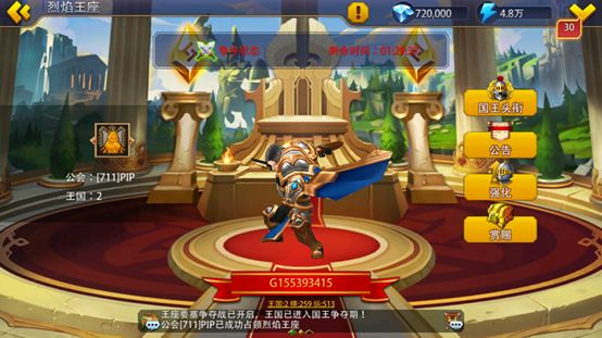 和平状态:公会占领王座打到指定时长,且未被抢夺,则进入和平状态。