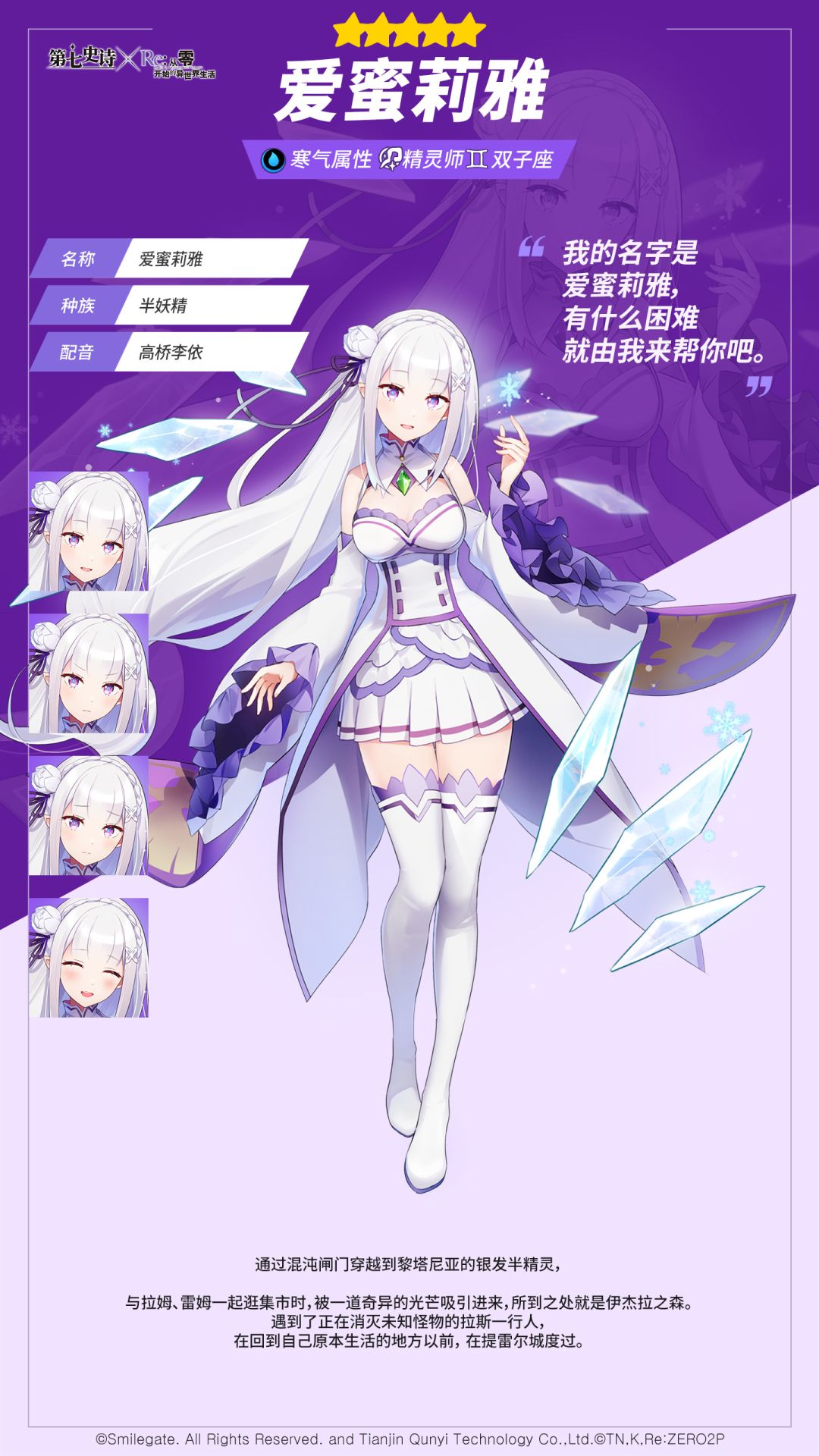 《第七史诗》×《Re:从零开始的异世界生活》联动角色,全新5星寒气属性英雄角色「爱蜜莉雅」将在8月31日停机更新维护后登场!