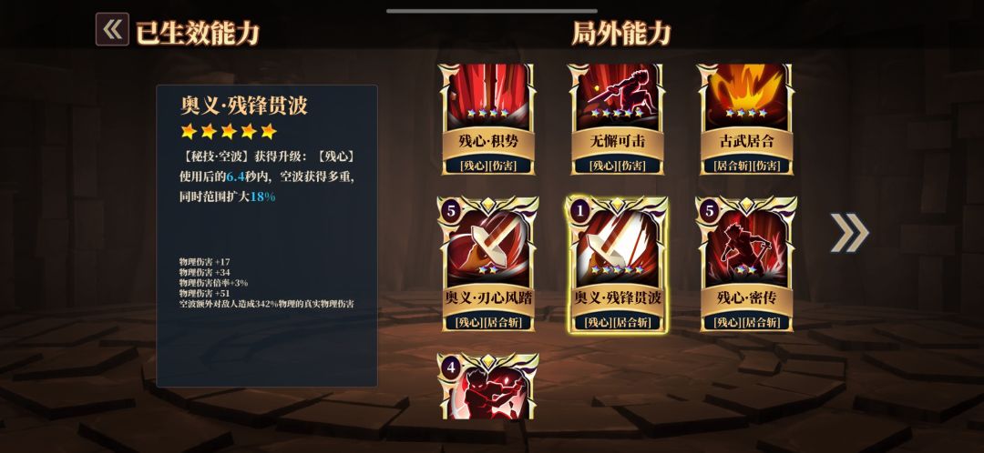 大剑核心无懈可击五星特效残心技能释放后三秒内不可被选中(3秒无敌),优先转换生存第一输出第二