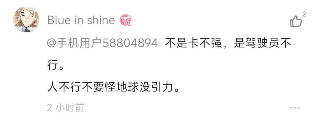 这年头一个清道中的理解就来评价卡强不强,真的是有够秀的,原来你游主要是靠打道中评论强度,学到了。![[嗒啦啦2_优秀]](https://img-tc.tapimg.com/market/images/bbb6da13ee1c31ee1405e261f12f366e.gif)