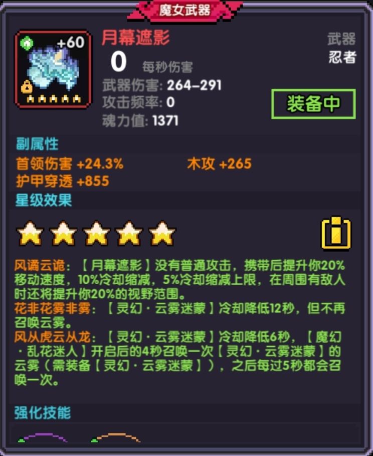 小怪大秘境,偏向于给自身提供增益buff来提供伤害