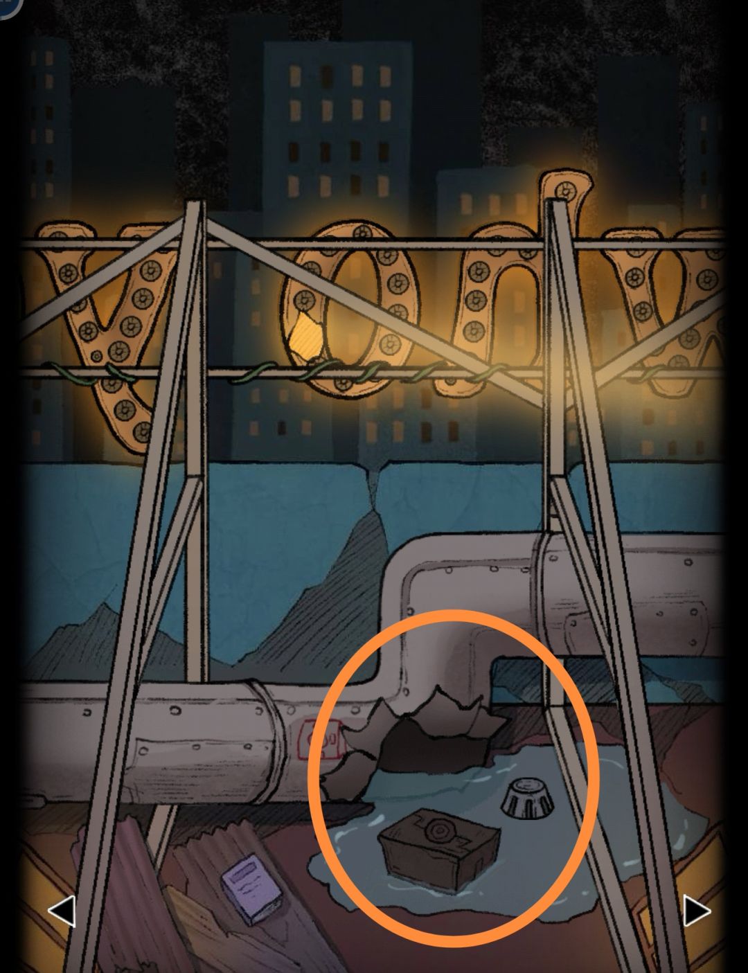 8.用【尖锐铁棍】撬开这里的管道缝隙得到一个有密码的铁盒子,密码稍后会有。