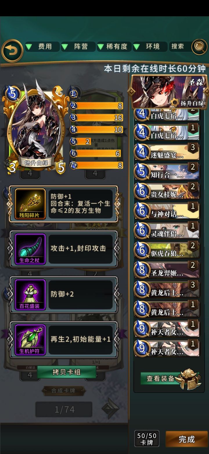 玩法:通过猫鼠盛宴跳费,有共鸣可以六费驱虎拉出女娲,前期通过大量封印怪度过,后期用黄龙复活不断补给消耗,通过扬升太平公主赌超模扬升闪卡