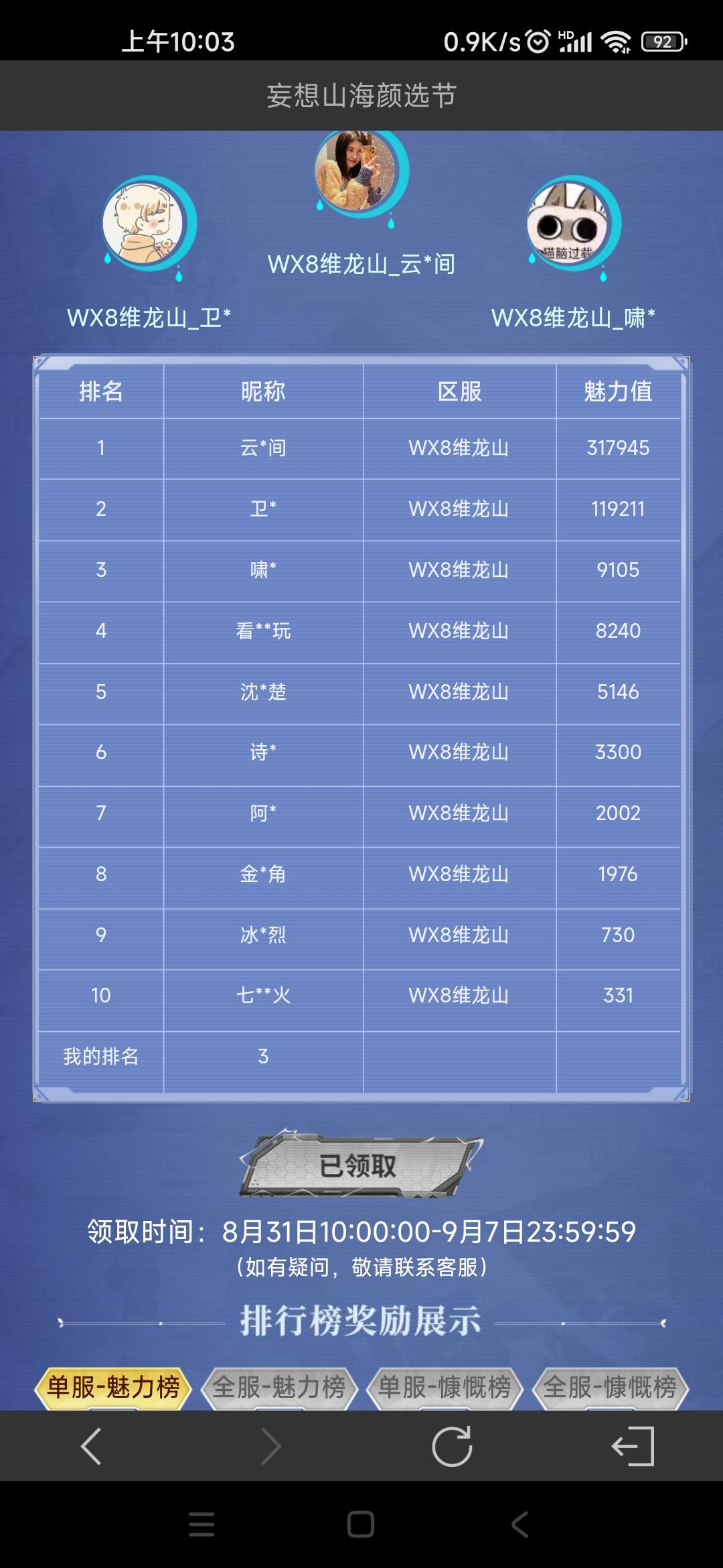 排第三只领到称号,没有家具