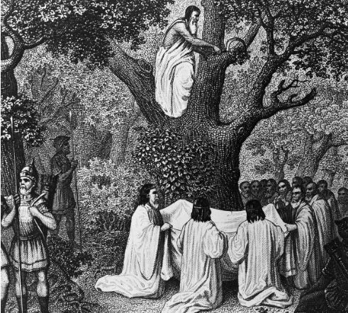 说回槲寄生,德鲁伊认为橡树是“圣树”,而无需种在土里也可以枝繁叶茂的槲寄生,就是天上下来的神物,并且由于其严冬不败,就更佐证了其“神圣”的意味,德鲁伊将其视为包治百病的万灵药。后续还演变除了用金镰刀割取槲寄生,用于各种仪式的传统。