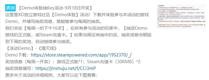 如果在体验过试玩Demo后对游戏感兴趣,我们还为XD独立游戏的玩家们准备了游戏本体的抽奖活动——