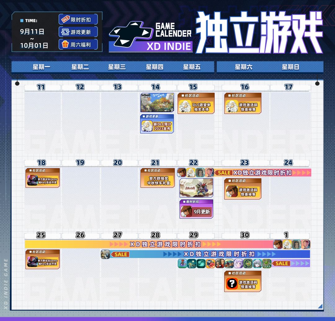XD独立游戏将在9月22日起陆续开启限时折扣,和大家一起庆祝中秋&国庆假期的到来~