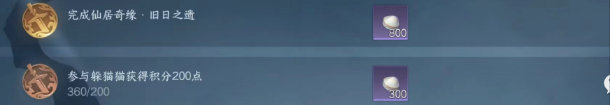 一、红尘任务【仙居奇缘】:任务接取:主菜单→任务→华章任务→【仙居奇缘】是一个系列任务,第一天完成,可以获得【躲猫猫】图鉴,25点剧情点的奖励;还有一封无情的信件收藏。