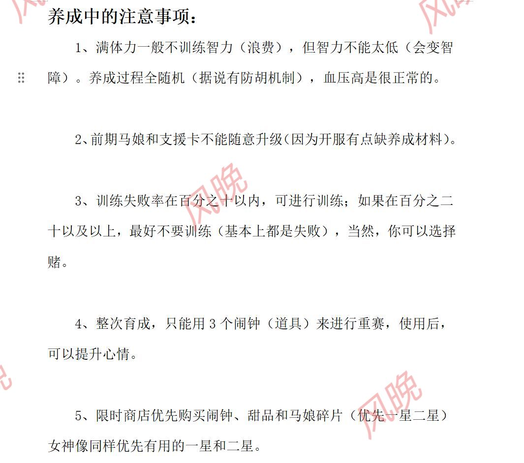 养成中的注意事项