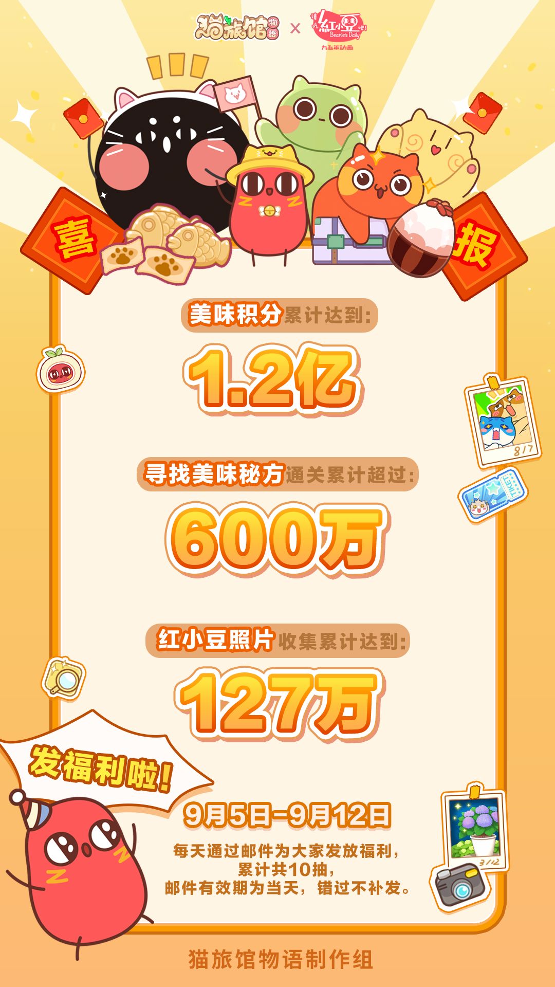 在夏日甜品季活动中,全服豆崽美味积分突破1.2亿!寻找美味秘方通关累计超过600万次!红小豆宿舍照片收集累计达到127万张!