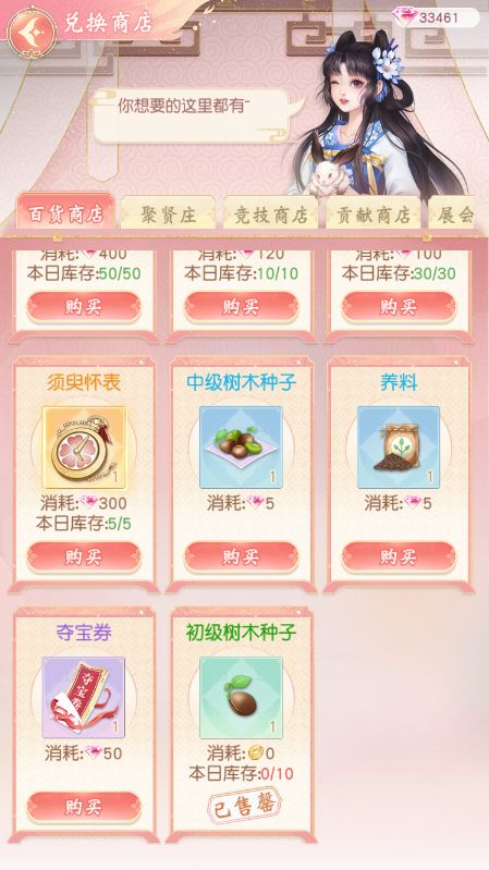 4.场商店提供各种种子和施肥养料道具,使用“铜钱”或“钻石”可购买。
