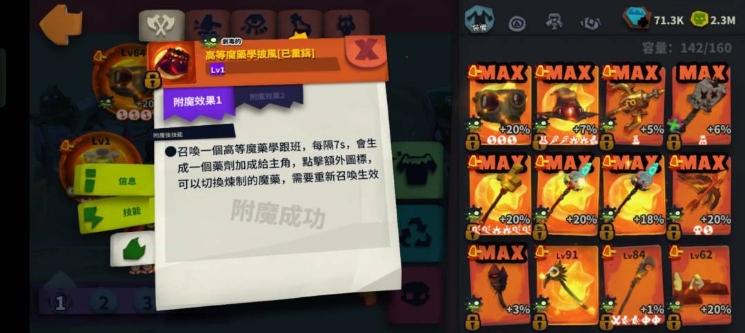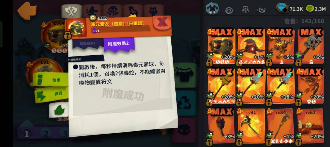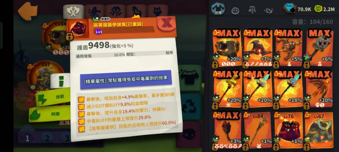 且要考量防禦機制最理想當然是精華魔護衣,且因不用毒球增傷還好,可替換 爆擊隨機屬性系列:爆擊滿+爆擊增傷來替補。
