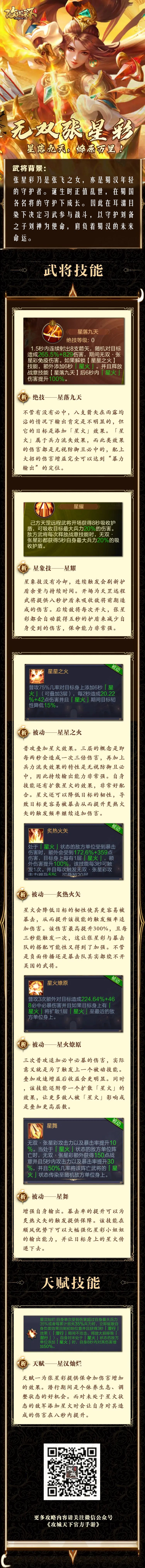 武将图鉴丨无双张星彩技能一图读懂!星落九天,燎原万里!