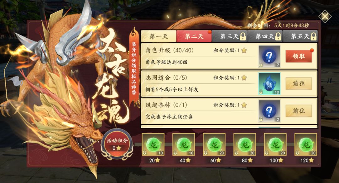 对于有一定消费能力的少侠,神龙吟是必不能错过的,仅仅需要打满四级宝石,其他的任务都是随手完成的,就可以在第五天召唤第一只神兽太古龙魂拉~错过这一波可就要多花不少时间了。