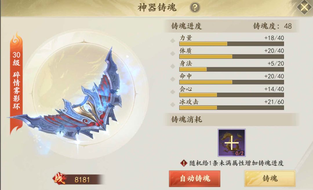 注:神器洗炼和装备的专精属性差不多,选择适合自己的洗出橙色品级就可以。