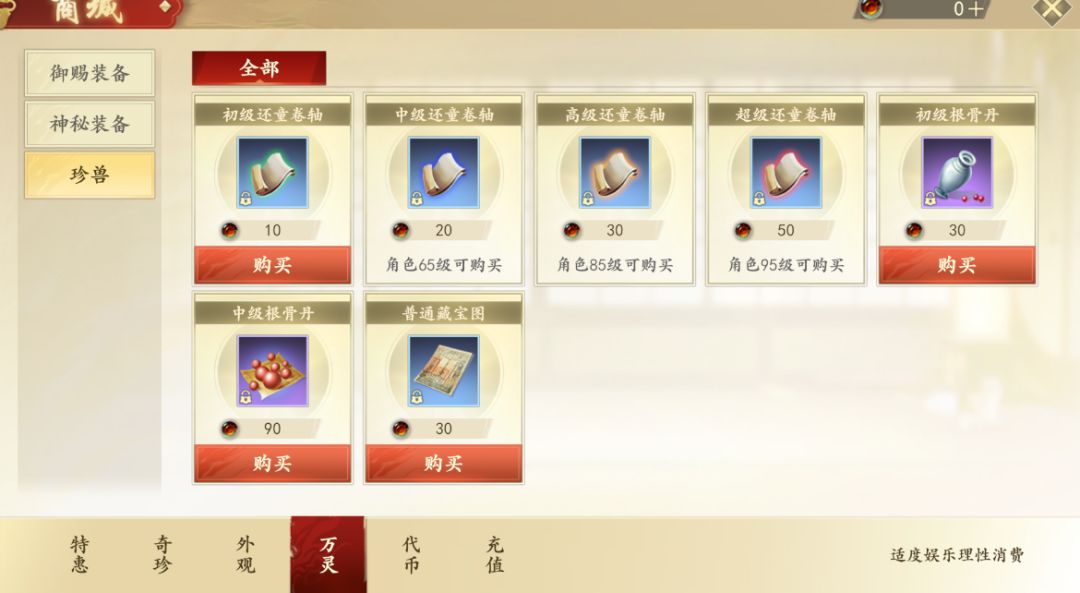 注:在限时活动--百里挑一里可以购买到高颜值的熊猫宝宝蛋哦~还有洗完美也可以在万灵石商店兑换普通的还童卷轴,洗出完美的几率也不比花费元宝买的还童天数低!