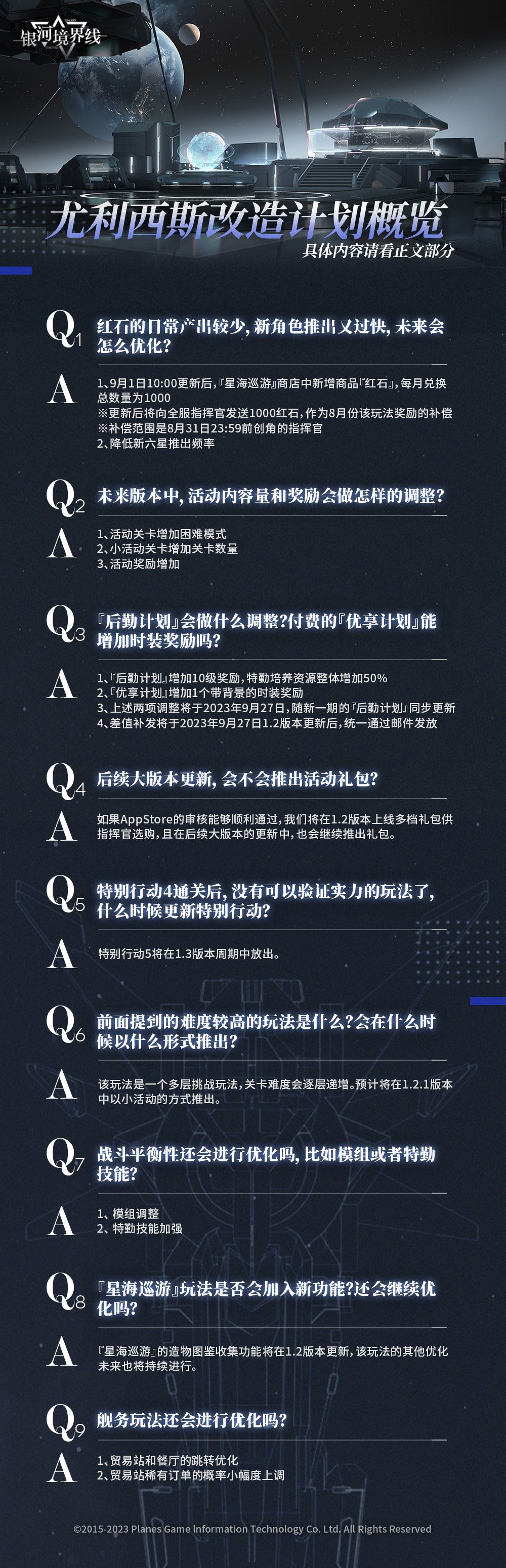 3、上述两项调整将于2023年9月27日,随新一期的『后勤计划』同步更新