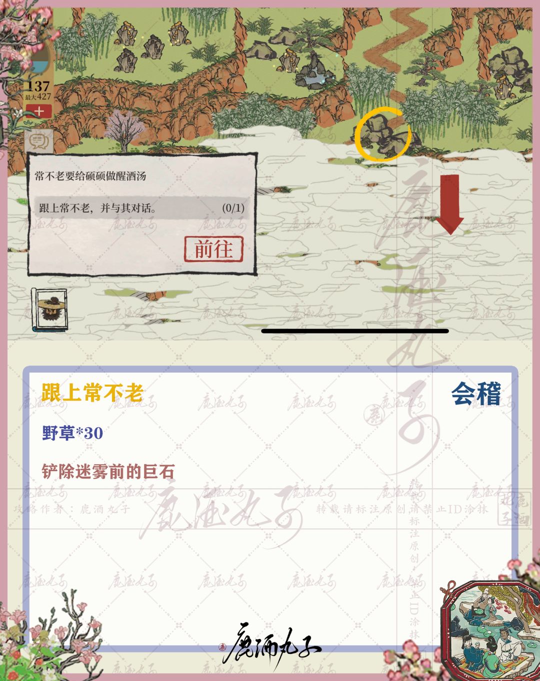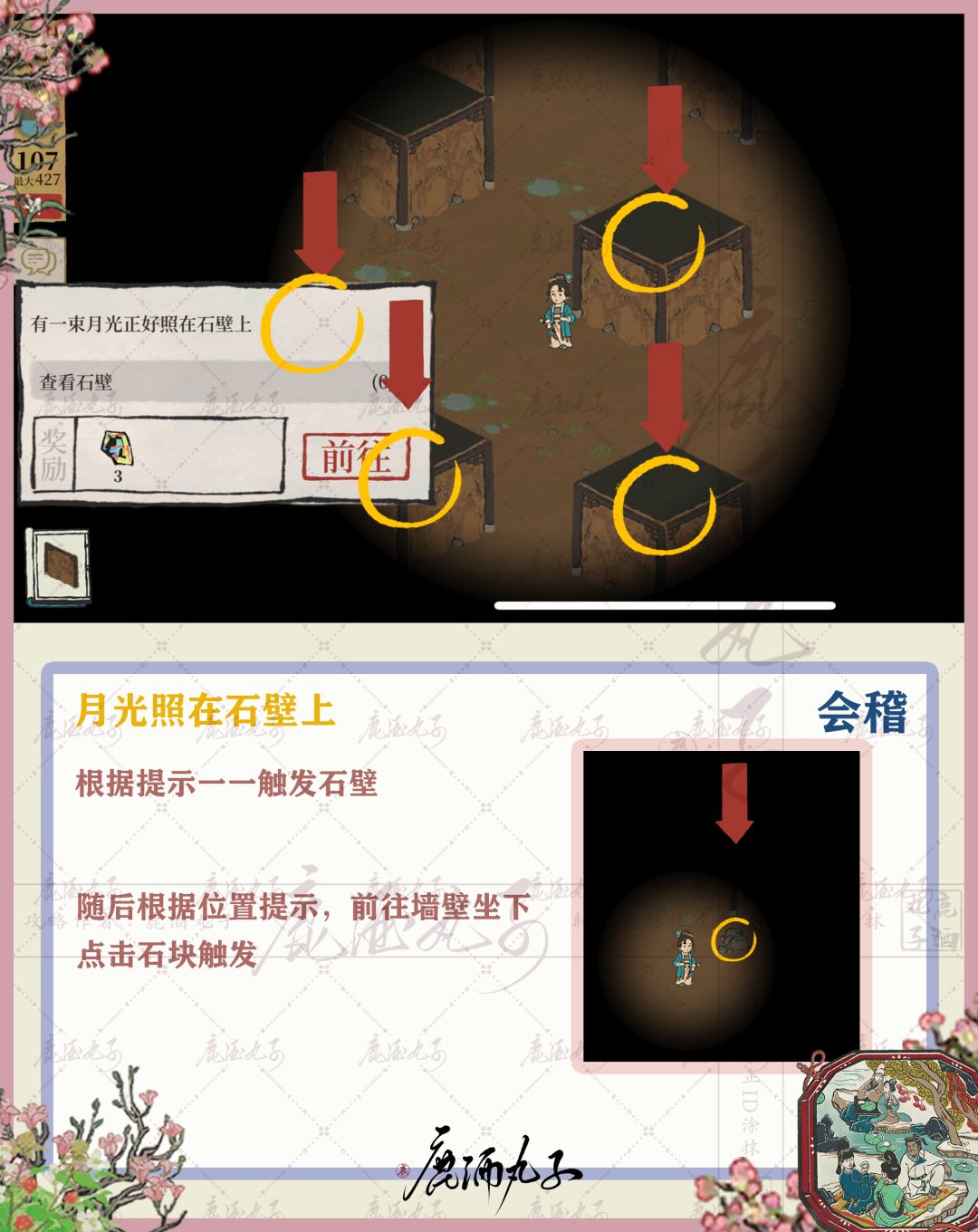 🌸随后根据位置提示,前往墙壁坐下