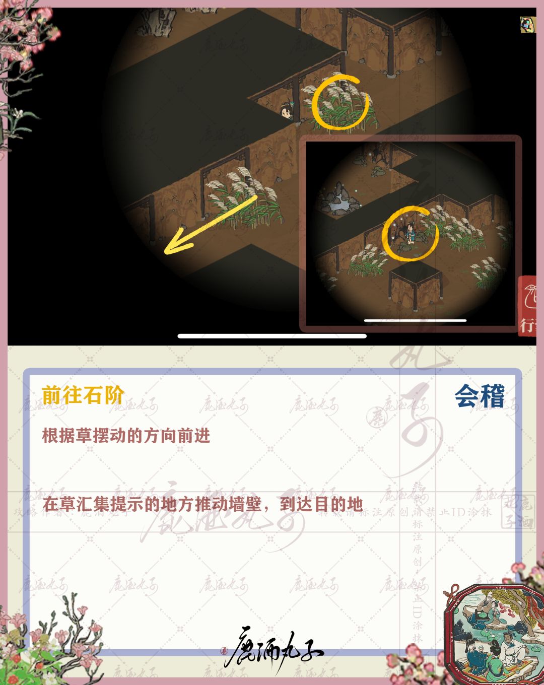 🌸在草汇集提示的地方推动墙壁,达到目的地