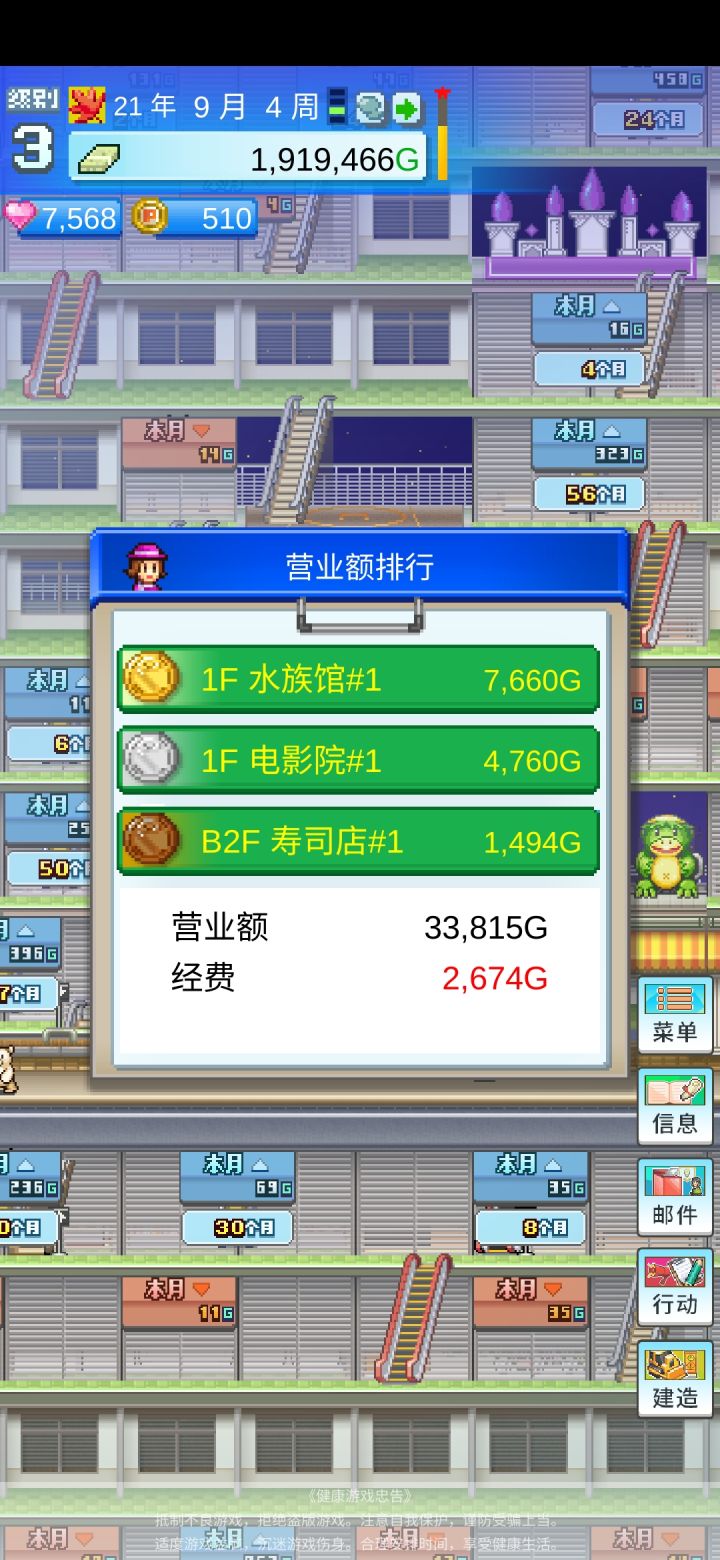 另外tips: 只要把商品单价高的商店安置到到第一层,钱就可以迅速攒起来。