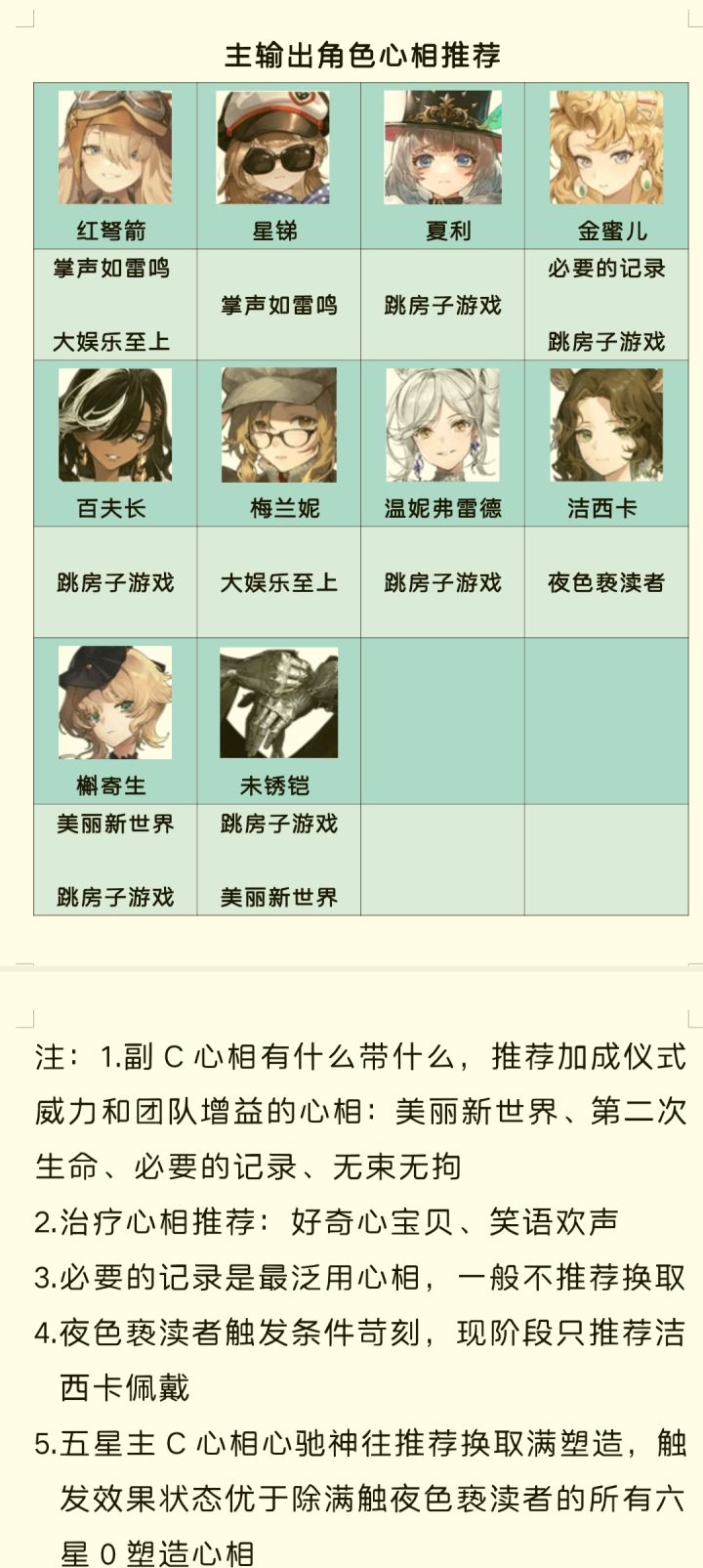新手任务和七日签到会赠送五星和自选六星心相,五星为无束无拘(可用于副C)、笑语欢声(治疗心相),自选六星心相推荐换取主C心相和治疗心相。