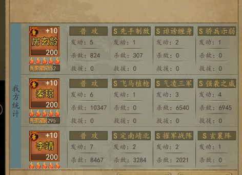 5、房枪:秦琼跟房都可主 我是喜欢秦琼主 兵书带疾行、带锋矢阵 走暴力路线 前2回合就要结束战斗、以暴制暴。再搭配李靖或者武则天都可以