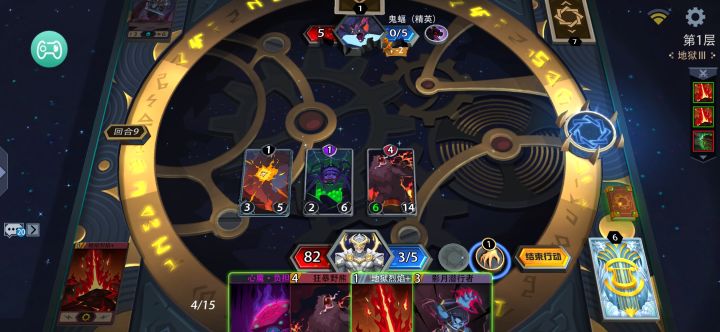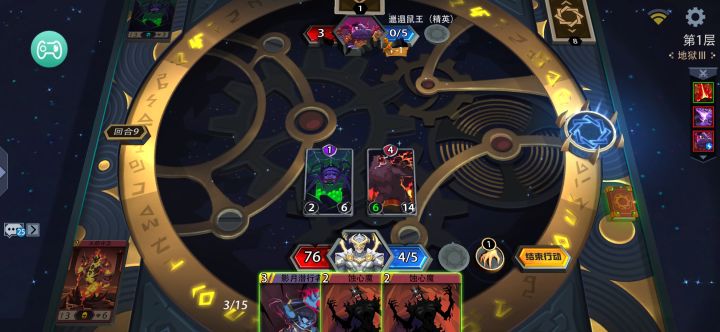 他的优点是初始卡组强度有,除了被老鼠3费日常偷6血。打最烦人的蝙蝠基本也可以稳定无伤。(图1、2纯初始卡组)