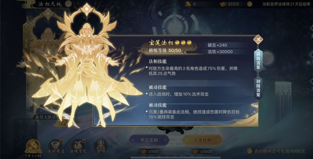 2、「圣界法域限时开启法相·宝莲」法相乃诸法之相状,修行大成者可在法相天地中求得宝莲法相!