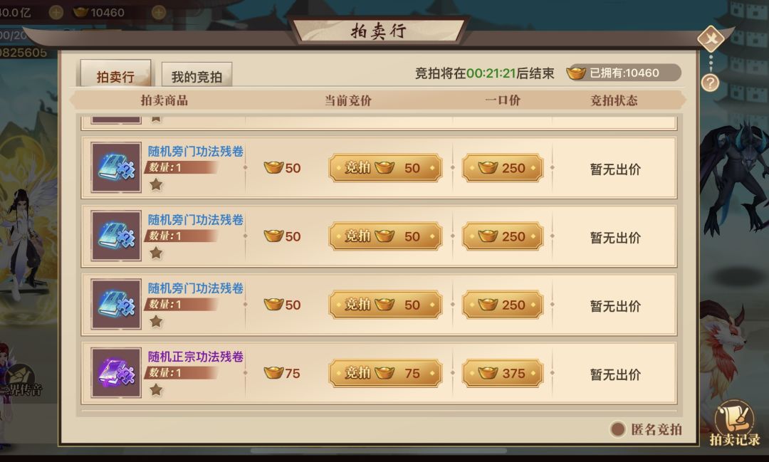 3、竞拍阶段结束后,出价最高的仙友及一口价成交的仙友获得对应商品。