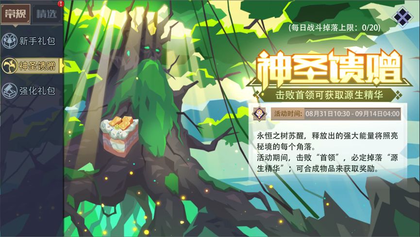 蛋糕块位置:【常规活动】-神圣馈赠活动界面的大树插画中间。