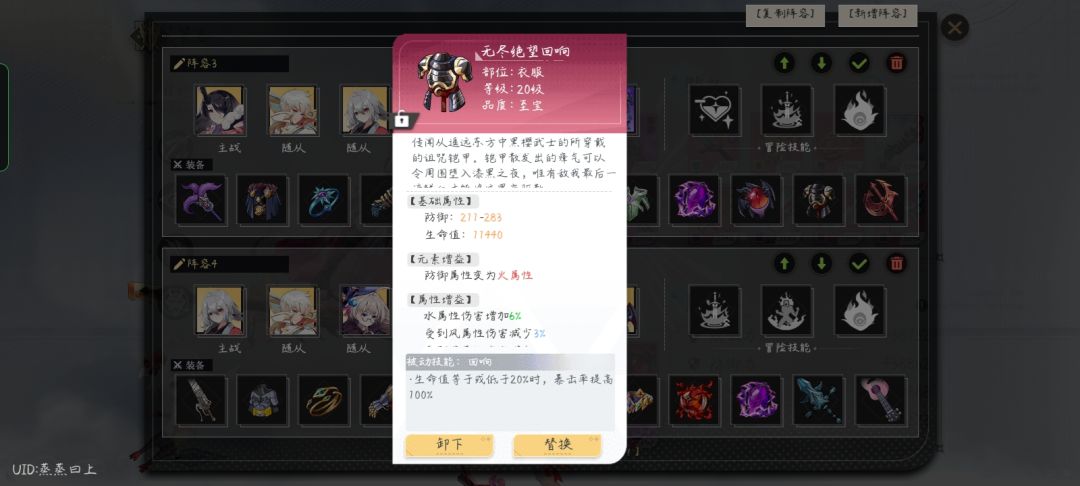 适配套装:冲层用6暴+6破,无尽用6破或6暴,搬砖6欲。(搬砖和无尽有提升大于6+6的无套装装备)