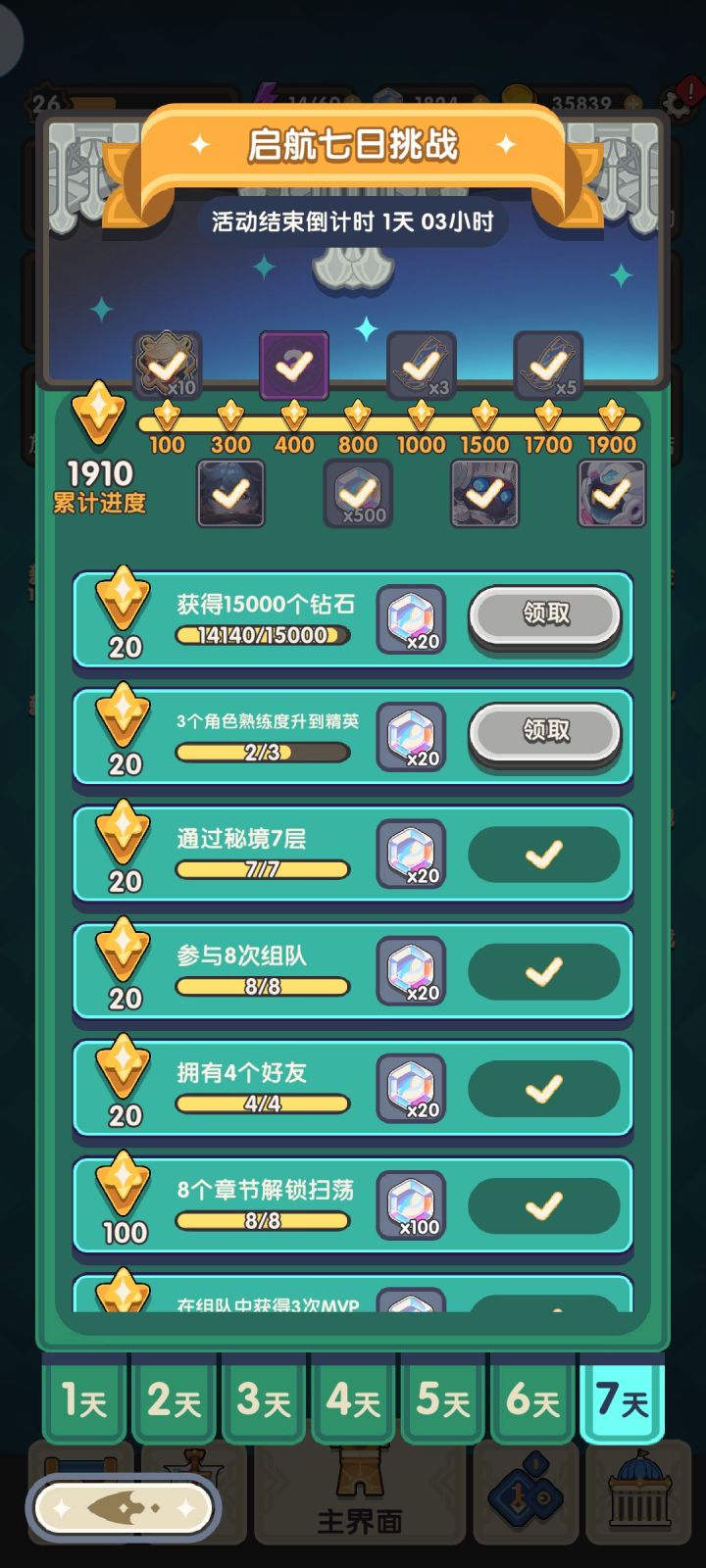 2.秘境爬到第七层(秘境不给人物熟练度)
